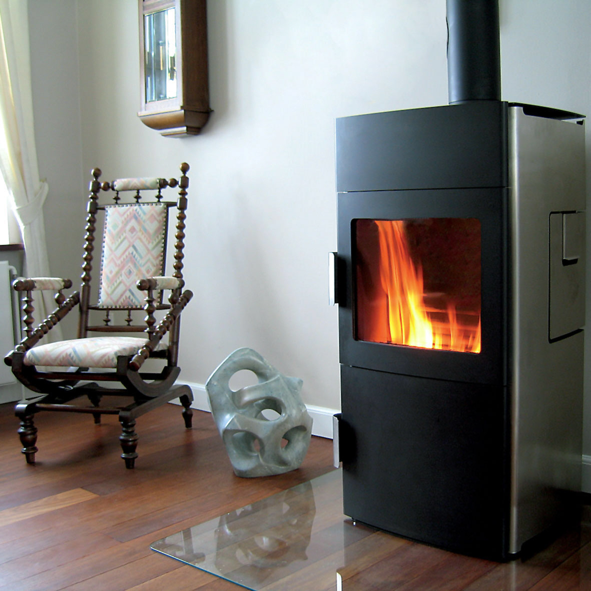 Die große Palette unterschiedlichster Modelle - zur Befeuerung mit Holzscheiten oder aus einem großen Holzpelletmagazin - reicht bis zu Kaminöfen, die auch als primäre Heizquelle für Heime zwischen 100 und 200 Quadratmetern geeignet sind. Ausgestattet mit einem Wassertank, können einige Öfen sogar an die Zentralheizung angeschlossen werden, wodurch sich die Energie im ganzen Haus nutzen lässt. |