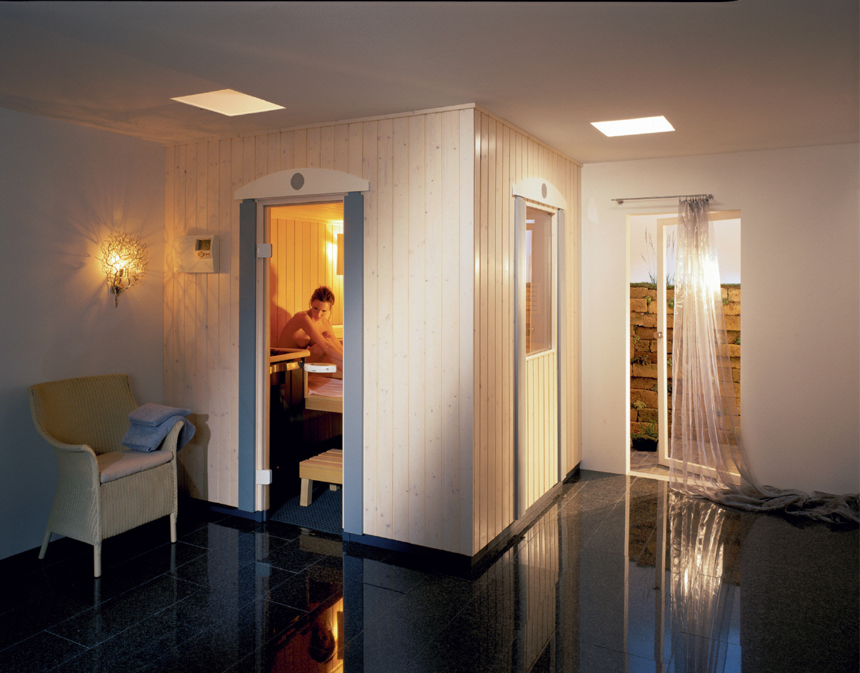 Sauna und Fitnessgeräte Voraussetzung für eine eigene Sauna ist ein Starkstromanschluss, der von einem örtlich zugelassenen Elektriker verkabelt werden muss. Das kostet bei vorhandenen Anschlüssen etwa 400 Euro. Die Saunakabine sollte so aufgestellt sein, dass die Abluft durch einen Mauerdurchbruch direkt ins Freie abgeführt werden kann. Heimwerker sind mit einem Sauna-Komplettset gut beraten. Es enthält Wände, Ofen, Wärmeisolierung sowie Sitzbänke und kostet ab 1.000 Euro. Fitness-Geräte kauft man am besten im Fachhandel und testet sie vorab, zum Beispiel in einem Fitness-Studio.